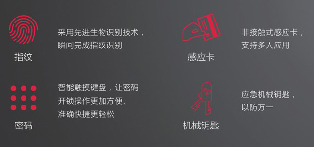 匯泰龍T8智能門鎖靈活開(kāi)鎖,具有四種開(kāi)門方式:指紋、密碼、感應(yīng)卡、機(jī)械鑰匙,滿足不同開(kāi)門習(xí)慣的需求。