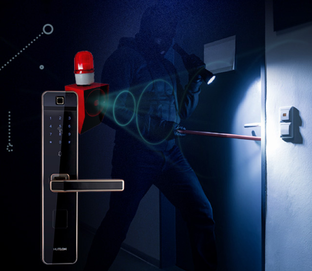 匯泰龍T8智能門鎖內(nèi)置報(bào)警系統(tǒng),盜賊撬門時(shí),觸發(fā)內(nèi)置報(bào)警系統(tǒng),保衛(wèi)家門。