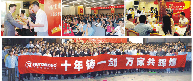 陳鴻填:匯泰龍在1996年成立時做了定位,就是做配套工程五金,小到一個家庭、家裝的五金產(chǎn)品,大到一個酒店、一個工程項目產(chǎn)品,我們做全系統(tǒng)的解決方案。匯泰龍的產(chǎn)品我們當時的定位是賣給最高端的20%人群。到了1999年,第一家專賣店開在廣州美居中心,應該是60、70平方米吧,當時品牌的效應非常好,因為整個行業(yè)都還沒有五金的品牌專賣店。匯泰龍其實在行業(yè)里面做第一的挺多,比如說第一家真正成體系的推出VI系統(tǒng),第一家把這些五金產(chǎn)品集成起來,包括我們在2004年,行業(yè)應該還沒有哪一家請明星做代言人的時候,匯泰龍就請了影視明星作為代言人。