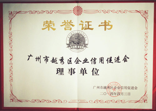 廣州市越秀區(qū)企業(yè)信用促進(jìn)會理事單位榮譽證書