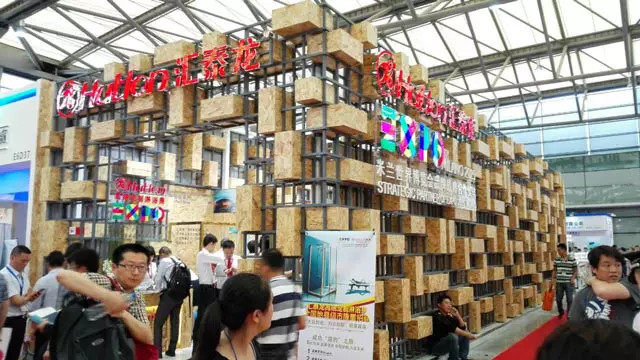 進(jìn)入E6館,一個(gè)碩大的由原木盒子構(gòu)成的主題展館吸引了客戶的眼球,公司的LOGO與2015年米蘭世博會(huì)色彩標(biāo)志相映成輝。十幾款精致的淋浴房巧妙地展示在展館內(nèi),原木色的墻壁,燈光從木盒子的縫隙中透射出來,投影在晶瑩的玻璃上。呼吸著木頭的香味,仿佛身處在初春晌午的森林中,這個(gè)就是匯泰龍上海廚衛(wèi)展“龍·自在”館。