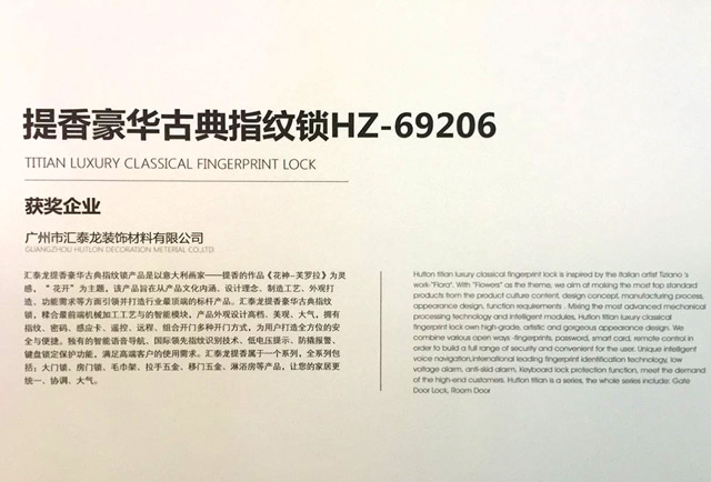 更為難得是,匯泰龍?zhí)嵯懵氏扔谛袠I(yè)內提出了全系列產品設計理念,包括;大門鎖、房門鎖、毛巾架、拉手五金、移門五金、淋浴房等產品,讓您的家居更統(tǒng)一、協(xié)調、大氣。在本次的設計周評比中,喜獲“紅棉獎”榮譽。