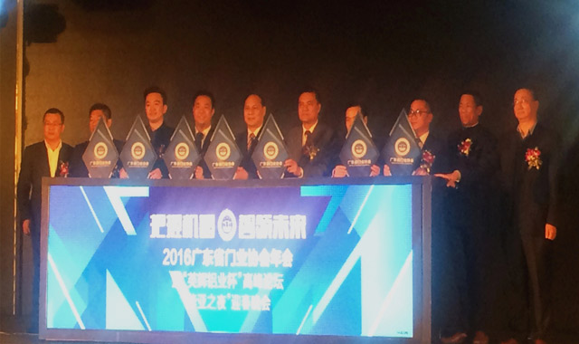 總經(jīng)理徐振忠先生代表匯泰龍接受《廣東省門業(yè)優(yōu)秀配材與機(jī)械》榮譽(yù)頒獎(jiǎng)