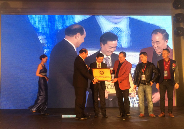 匯泰龍董事長(zhǎng)陳鴻填先生代表廣東省門業(yè)協(xié)會(huì)鎖具五金專委會(huì)接受授牌