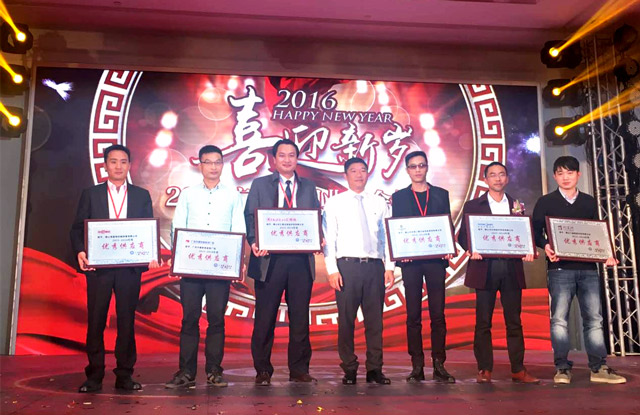 在接下來(lái)的優(yōu)質(zhì)供應(yīng)商頒獎(jiǎng)儀式上,憑借優(yōu)秀的產(chǎn)品品質(zhì)和極高的市場(chǎng)美譽(yù)度,匯泰龍榮獲廣東省門業(yè)《優(yōu)秀配材與機(jī)械》、《優(yōu)秀供應(yīng)商》光榮稱號(hào)。晚宴開(kāi)始后,伴隨著精彩節(jié)目的推進(jìn),當(dāng)晚進(jìn)行了激動(dòng)人心的抽獎(jiǎng)環(huán)節(jié),禮品種類豐富,匯泰龍公司贊助的精美豪華智能鎖獎(jiǎng)品,給獲獎(jiǎng)嘉賓帶去了時(shí)尚、高端、智能的科技體驗(yàn)。