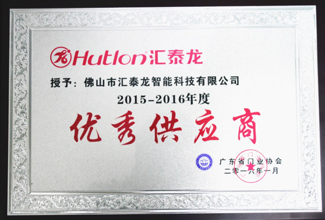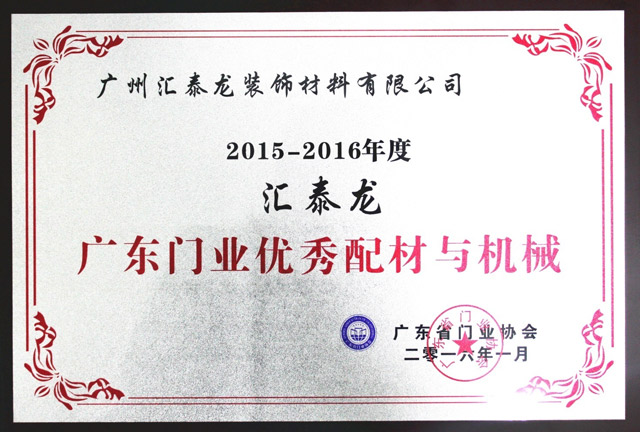 《廣東省門業(yè)優(yōu)秀配材與機(jī)械》、《優(yōu)秀供應(yīng)商》牌匾