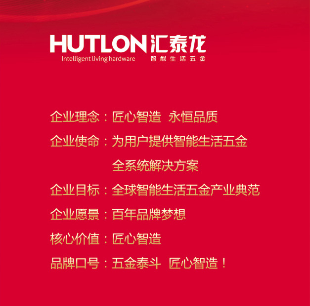 在匯泰龍品牌走過二十周年之際,智能家居時(shí)代賦予匯泰龍新的使命和定義:打造國(guó)際高端智能生活五金第一品牌!延續(xù)求實(shí)、向上、敬業(yè)、和諧的文化根基,傳承匯泰龍20年輝煌底蘊(yùn)及品牌影響力。