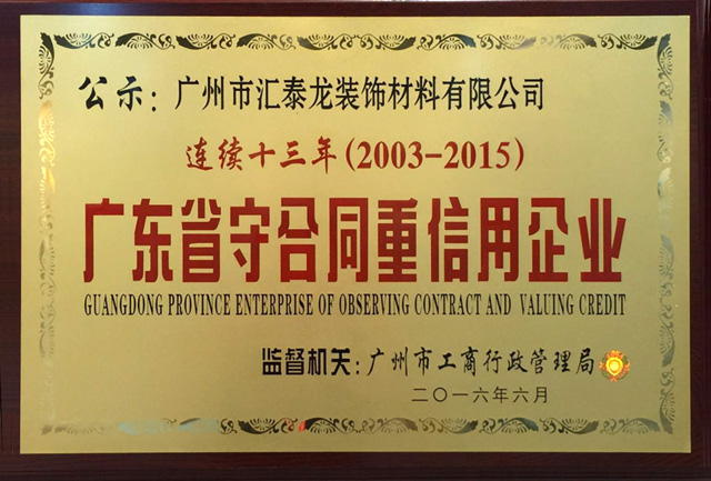 匯泰龍連續(xù)13年獲“廣東省守合同重信用企業(yè)”稱號