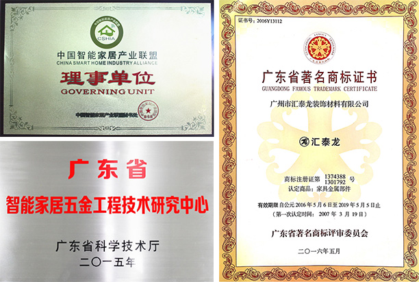 同時,憑借運用“關(guān)懷式”五星級服務(wù)理念,科學(xué)的市場運營管理,獲得行業(yè)贊譽和重磅榮譽舉不勝舉,榮膺:“中國質(zhì)量服務(wù)信譽AAA級企業(yè)”、“智能創(chuàng)新企業(yè)”、“中國智能家居產(chǎn)業(yè)聯(lián)盟理事單位”、“廣東省著名商標(biāo)”、“連續(xù)十三年廣東省守合同重信用企業(yè)”、“全國建筑裝飾材料科技創(chuàng)新獎”、“全國工商聯(lián)智能家居專業(yè)委員會執(zhí)行會長單位”、“廣東省智能家居五金工程技術(shù)研究中心”、“中國建筑裝飾協(xié)會材料分會常務(wù)副會長單位”等國家級和省級榮耀,產(chǎn)品檢測實驗中心率先通過國家級CNAS權(quán)威認(rèn)證。
