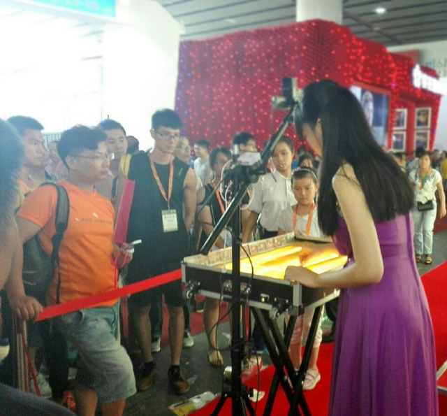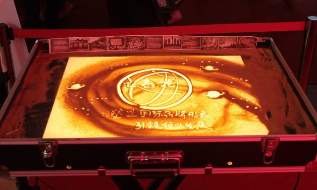 精彩的沙畫表演吸引了現(xiàn)場觀眾駐足欣賞