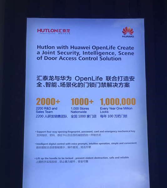 2016年9月2日,華為歷史上規(guī)模最大的面向ICT行業(yè)的全球生態(tài)大會(huì)——HUAWEI CONNECT 2016 在上海世博中心落下帷幕。匯泰龍作為華為OpenLife智慧家庭重要戰(zhàn)略合作伙伴之一應(yīng)邀亮相上海世博中心,面向全球120多個(gè)國家和地區(qū)的20000名業(yè)界精英,展示基于華為OpenLife智慧家庭生態(tài)的匯泰龍門鎖門禁解決方案,并憑此獲得華為開發(fā)者生態(tài)最佳解決方案獎(jiǎng)。