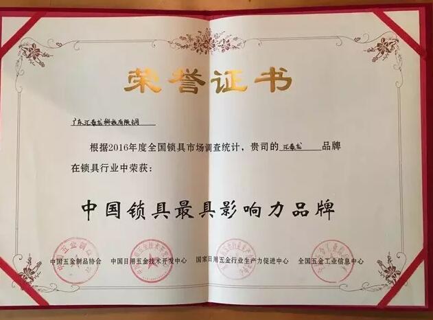 匯泰龍榮獲“中國鎖具最具影響力品牌”