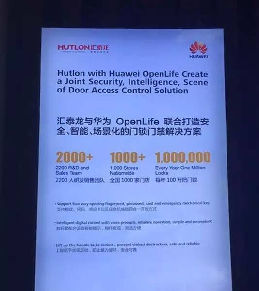 特別值得一提的是,匯泰龍?jiān)奇i還能與智能家居系統(tǒng)互聯(lián),2016年,匯泰龍?jiān)奇i先后與華為OpenLife智慧家庭生態(tài)和京東微聯(lián)實(shí)現(xiàn)對(duì)接,在確保家庭安防的基礎(chǔ)上,實(shí)現(xiàn)門(mén)鎖門(mén)禁與其他智慧家庭生態(tài)系統(tǒng)實(shí)時(shí)聯(lián)動(dòng),給智慧家庭各種場(chǎng)景模式提供信息入口。簡(jiǎn)單來(lái)說(shuō),用戶(hù)幾乎可以通過(guò)APP觸及到所有的服務(wù),真正做到物物相連,獲得更人性化的生活體驗(yàn)。