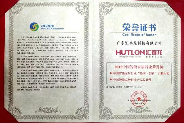 在接下來的2016中國家居業(yè)優(yōu)秀品牌表彰大會上,匯泰龍公司榮獲中國智能家居行業(yè)“協(xié)同·創(chuàng)新”貢獻大獎、中國智能家居行業(yè)產(chǎn)品設計大獎;陳鴻填先生榮獲中國智能家居行業(yè)“協(xié)同·創(chuàng)新”杰出貢獻人物榮譽!