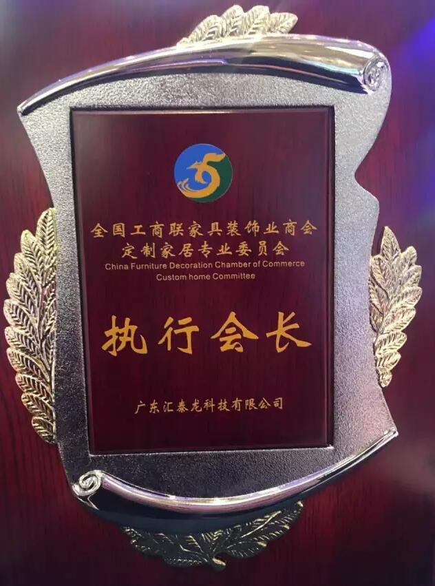 匯泰龍當選“全國工商聯(lián)家具裝飾商會定制家居專委會執(zhí)行會長”單位