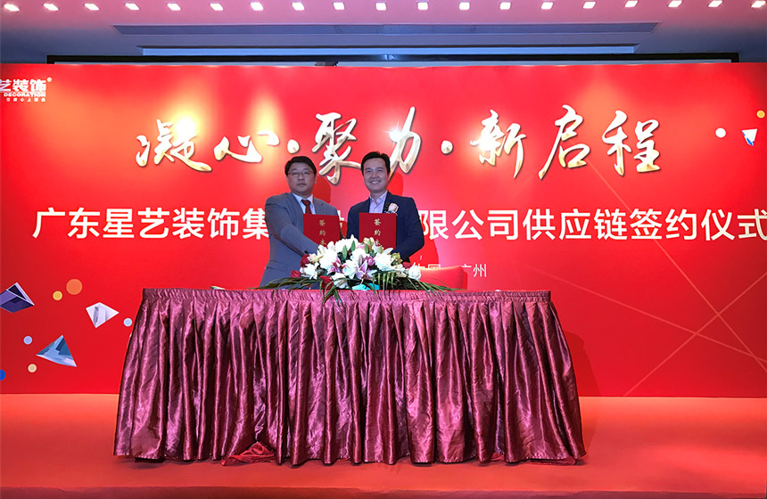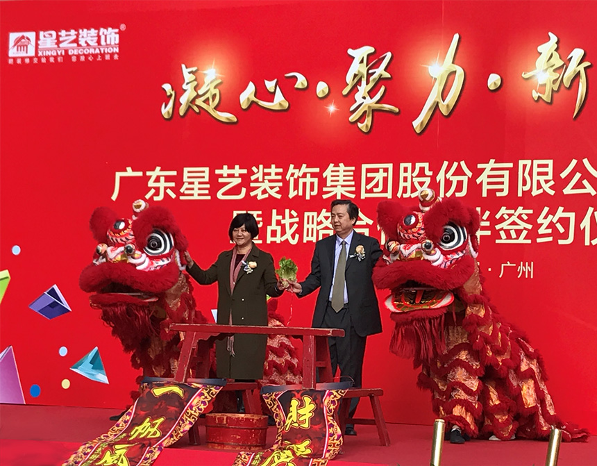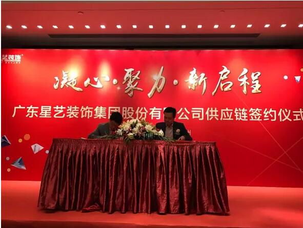 2016年12月28日,廣東星藝裝飾集團(tuán)股份有限公司喬遷盛典暨戰(zhàn)略合作伙伴簽約儀式在廣州隆重召開,匯泰龍董事長(zhǎng)陳鴻填先生與匯泰龍大客戶部總監(jiān)陳少森先生受邀參加喬遷盛典,見證星藝集團(tuán)發(fā)展史上又一個(gè)具有革命性意義的里程碑。