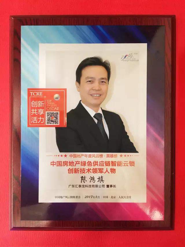 匯泰龍董事長陳鴻填先生榮獲“中國房地產(chǎn)綠色供應鏈智能云鎖創(chuàng)新技術領軍人物”