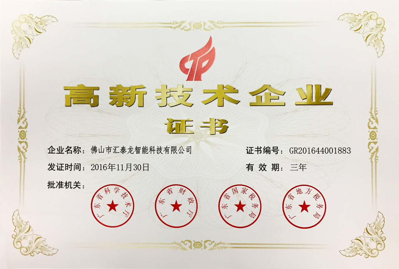 近日,匯泰龍收到廣東省科學(xué)技術(shù)廳、廣東省財政廳、廣東省國家稅務(wù)局、廣東省地方稅務(wù)局聯(lián)合頒發(fā)的「高新技術(shù)企業(yè)證書」。