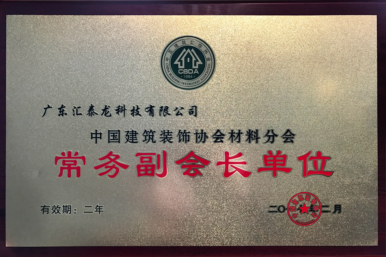 匯泰龍公司以其先進(jìn)的研發(fā)能力,極高的技術(shù)水平及強(qiáng)大的行業(yè)領(lǐng)域影響力、市場(chǎng)占有率和良好的口碑,獲得了消費(fèi)者的好評(píng)和業(yè)界同仁的一致認(rèn)可,連任「中國(guó)建筑裝飾協(xié)會(huì)材料分會(huì)常務(wù)副會(huì)長(zhǎng)單位」,匯泰龍董事長(zhǎng)陳鴻填先生受聘為「中國(guó)建筑裝飾協(xié)會(huì)材料分會(huì)常務(wù)副會(huì)長(zhǎng)」,同時(shí)匯泰龍榮膺「2017年度中國(guó)建筑裝飾協(xié)會(huì)材料分會(huì)優(yōu)秀會(huì)員單位」。