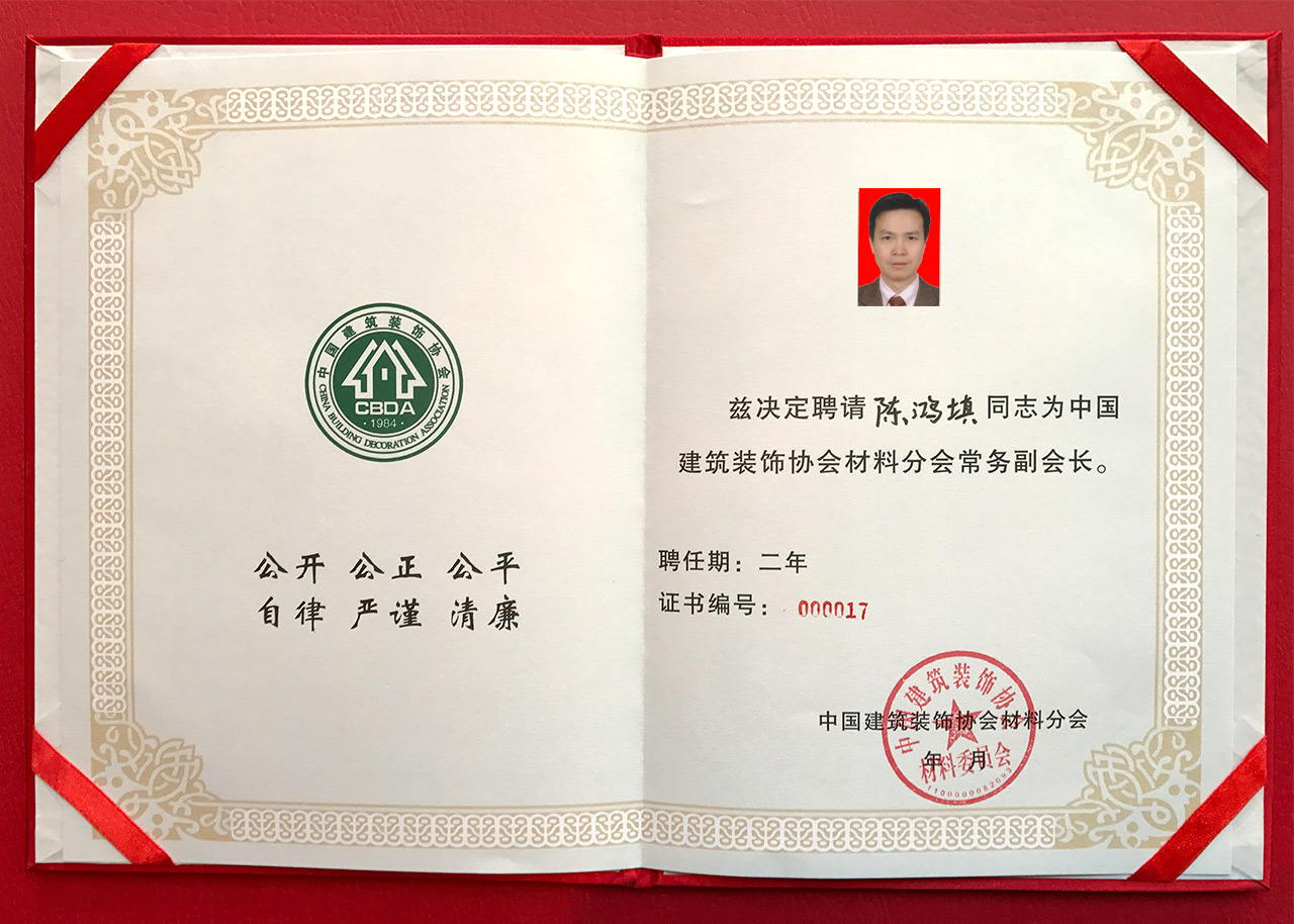 匯泰龍董事長(zhǎng)陳鴻填先生榮膺「中國(guó)建筑裝飾協(xié)會(huì)材料分會(huì)常委副會(huì)長(zhǎng)」