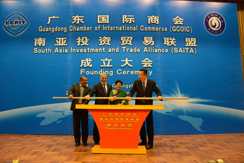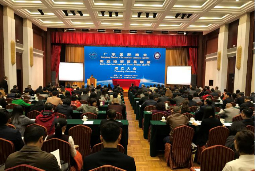 2017年3月15日下午,由廣東省貿(mào)促會(huì)發(fā)起的南亞投資貿(mào)易聯(lián)盟成立大會(huì)在廣州成功舉辦。省貿(mào)促會(huì)(廣東國際商會(huì))會(huì)長林濤、副會(huì)長羅丙志和印度、巴基斯坦、斯里蘭卡駐廣州總領(lǐng)事館官員以及廣東省內(nèi)企業(yè)代表約100人參加了成立大會(huì)。
